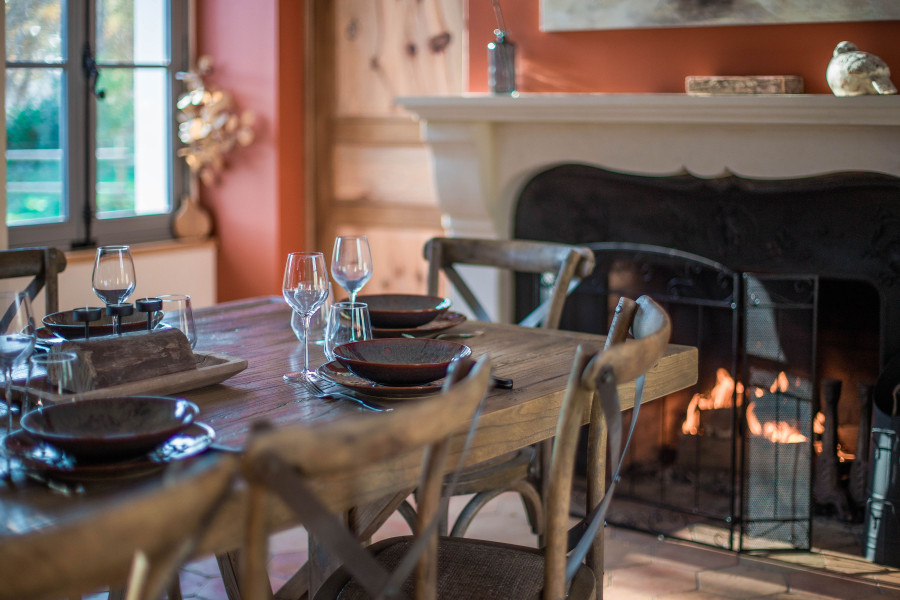 Dans le prolongement de la cuisine, la salle à manger accueille les convives autour d’une grande table conviviale, idéale pour les repas festifs, les anniversaires ou les longues discussions qui se prolongent tard dans la soirée.