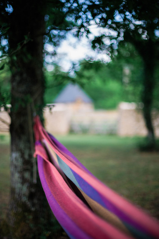 Un coin hamac installé à l’ombre des arbres permet de s’accorder un moment de calme, de lecture ou de sieste au cœur de la nature.